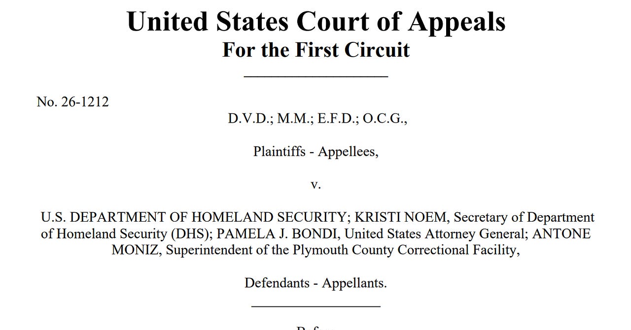 The First Circuit stayed a lower court ruling over third country removals, but also set quick merits review. Also: A mid-week legal round up. And, for paid subscribers: Closing my tabs.