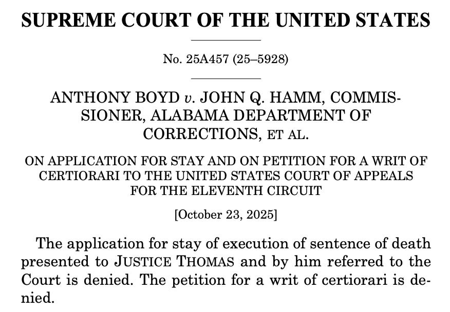Over a sharp dissent from Justice Sonia Sotomayor, joined by Justices Elena Kagan and Ketanji Brown Jackson, the U.S. Supreme Court will not stop Alabama from killing Anthony Boyd tonight.