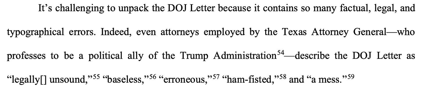 Lest you think I’m being harsh, here’s what Brown — quoting the Texas Attorney General’s Office — wrote about the letter: