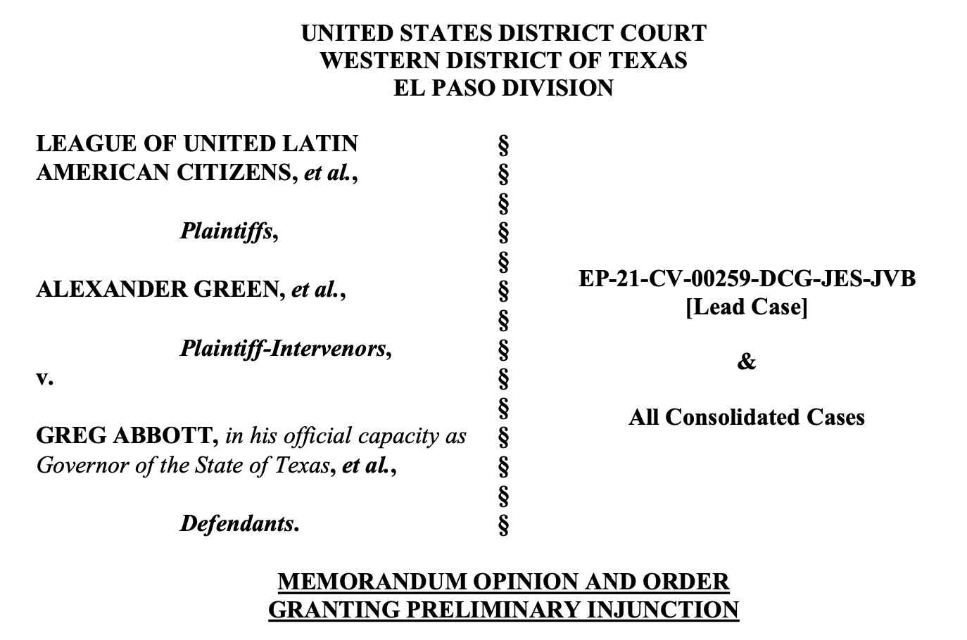 Court blocks Texas redistricting, finding it likely unconstitutional, with DOJ largely to blame