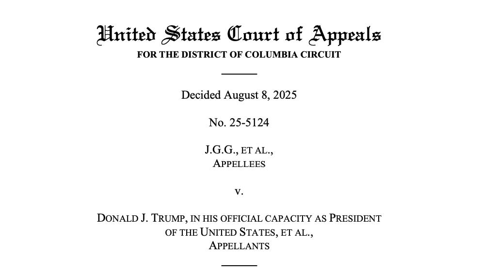 The 2-1 vote would cut off the contempt proceedings that followed the admin's Alien Enemies Act flights to CECOT. Full review by all 11 D.C. Circuit judges could follow.