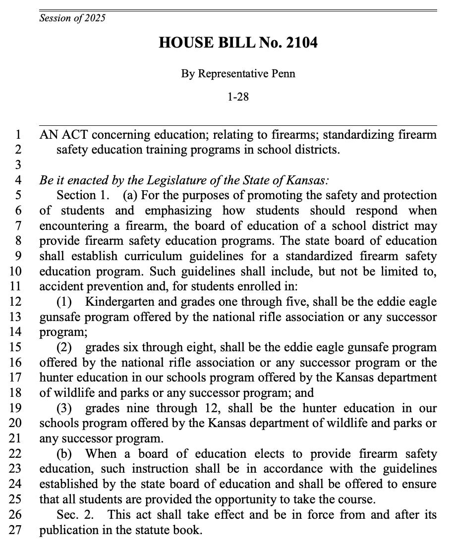 Yes, the main legislative effort — not a bill that passed, mind you — of the man who spent his weekend ordering states to “undo” SNAP payments was a bill to put National Rifle Association gun safety courses in Kansas schools.
