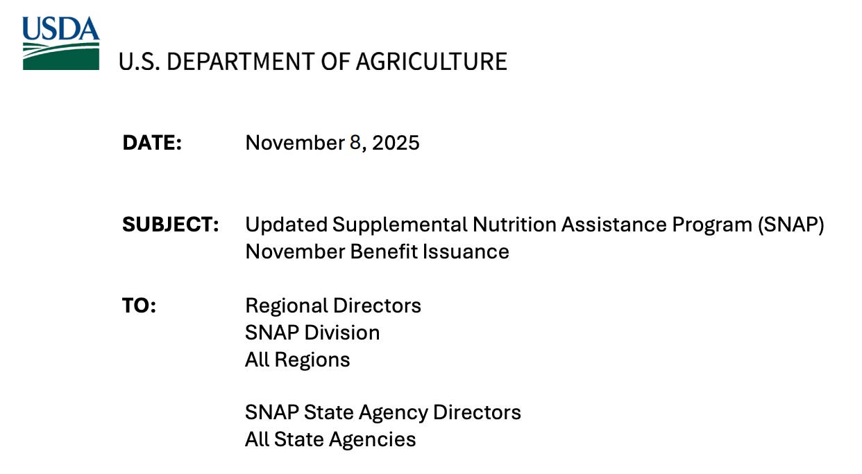 To the extent States sent full SNAP payment files for November 2025, this was unauthorized. Accordingly, States must immediately undo any steps taken to issue full SNAP benefits for November 2025.