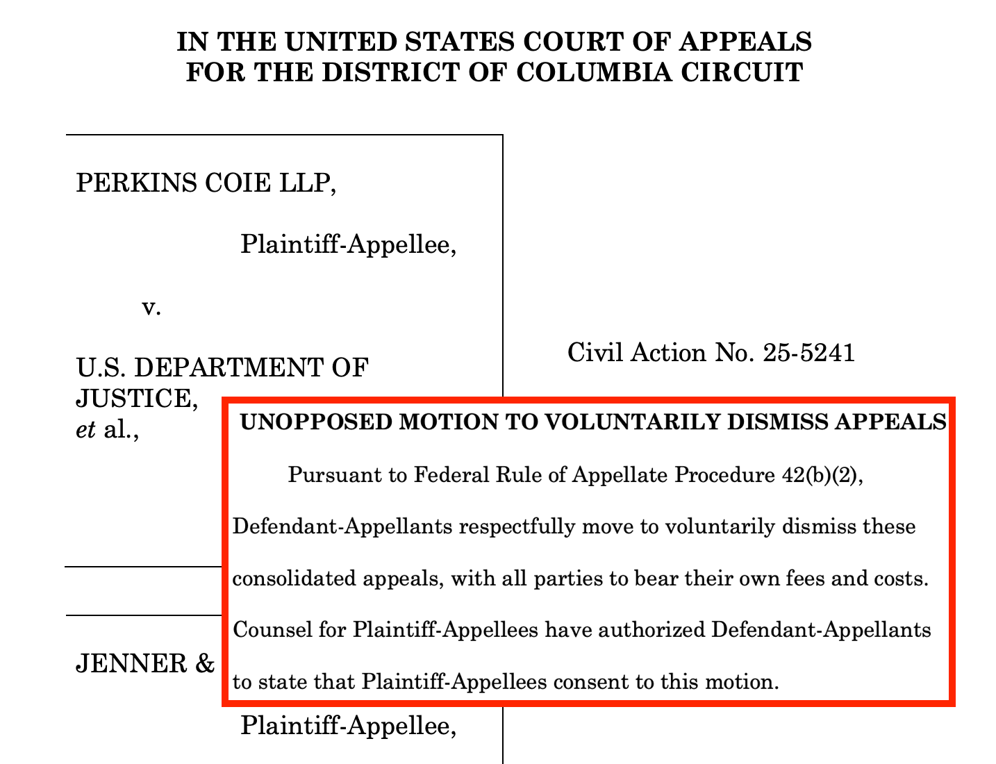 [Note: This report was updated after the Justice Department filed its motion to dismiss the law firm executive order case appeals, with the final update at 9:30 p.m.]