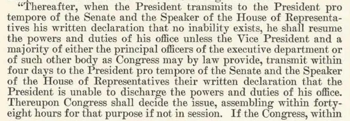 Chris, thank you for saying what so many are thinking. I’m wondering something. If such a proceeding were to start, is there something in the amendment that would stop Trump from firing the members of his cabinet who were involved?