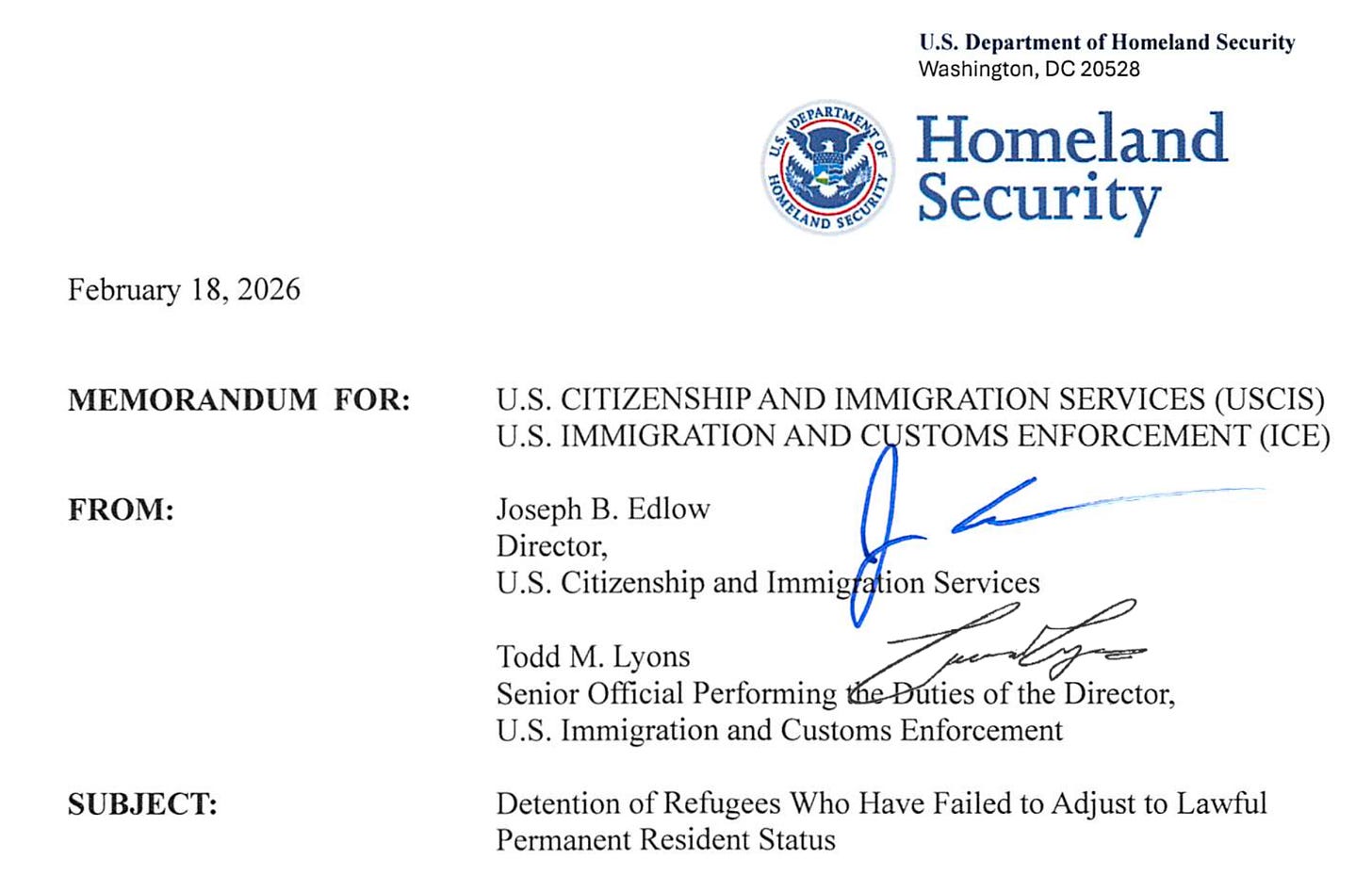 Joseph Edlow, the director of U.S. Citizenship and Immigration Services, and Todd Lyons, the “senior official performing the duties of the director” of U.S. Immigration and Customs Enforcement, issued the joint memo on Wednesday, the day before a key hearing in a case challenging the Trump administration’s treatment of refugees in Minnesota. DOJ filed the memo in the case later Wednesday.