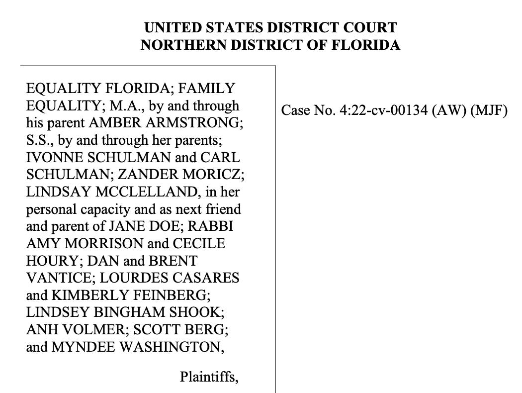 Last month, the state of Florida and other defendants asked that a federal court toss out the lawsuit. On Wednesday, the plaintiffs’ lawyers from Kaplan Hecker & Fink LLP, the National Center for Lesbian Rights, and McDermott Will & Emery LLP filed their opposition, arguing that the lawsuit should be allowed to proceed.