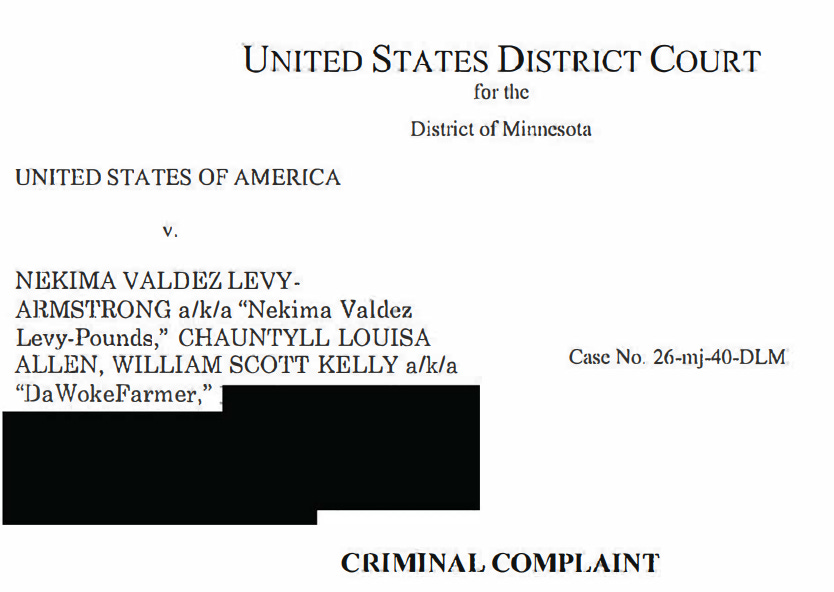 When the criminal complaint — signed by Timothy Gerber, OHS-ICE Special Agent — was unsealed Friday as to Levy-Armstrong, Allen, and Kelly, it was clear that others — whose names were redacted — were at least initially sought to be included in the complaint.