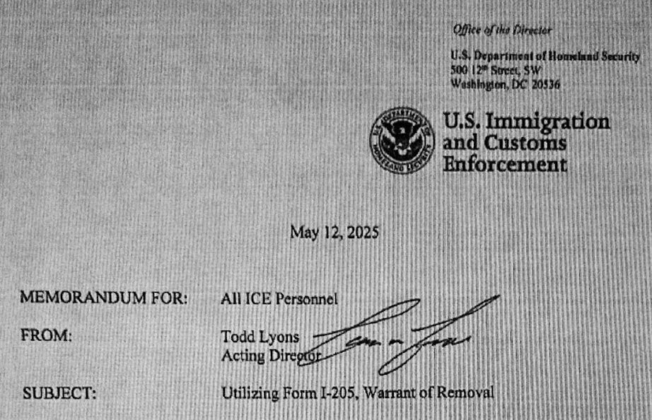 From the explosive May 2025 memo authored by Todd Lyons, the acting director of U.S. Immigration and Customs Enforcement: