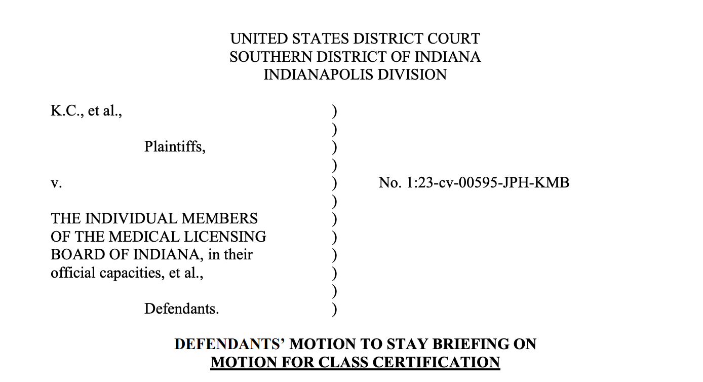 On Wednesday, however, Indiana Attorney General Theodore Rokita and the lawyers in his office struck back — by arguing, in a motion to stay briefing (put it on hold) on the class certification motion, that this is all too much for them to handle right now.