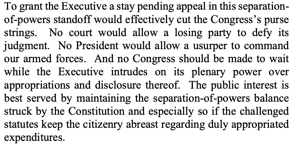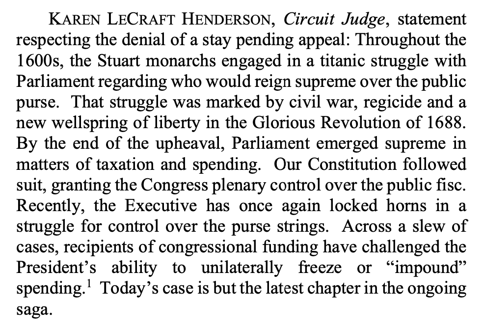 With her statement that “no Congress should be made to wait while the Executive intrudes on its plenary power over appropriations and disclosure thereof,” Henderson did more on a Saturday afternoon in the summer to stand up for the constitutional powers of the legislative branch than House Speaker Mike Johnson or Senate Majority Leader John Thune have done all year.