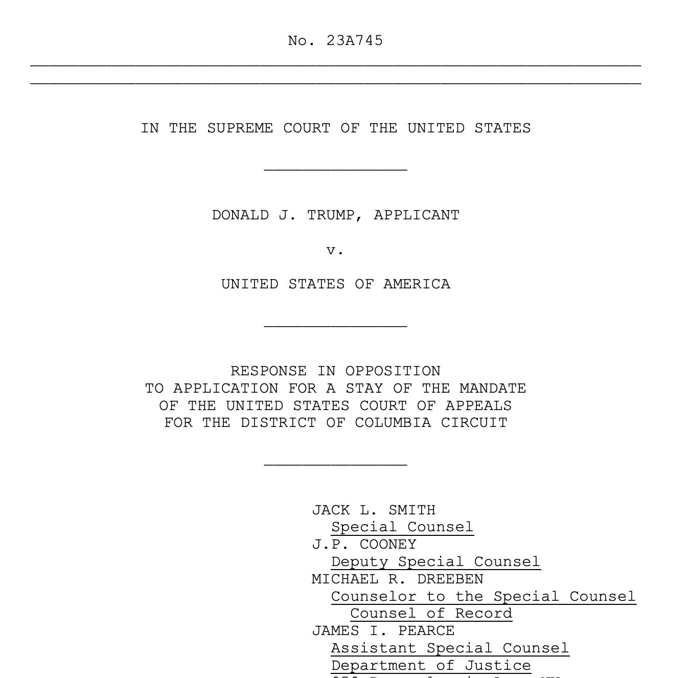 Special Counsel Jack Smith wasted no time in urging the Supreme Court to reject Donald Trump’s request to keep his D.C. federal trial on hold, with Smith filing his opposition to Trump’s Feb. 12 application less than 50 hours later.