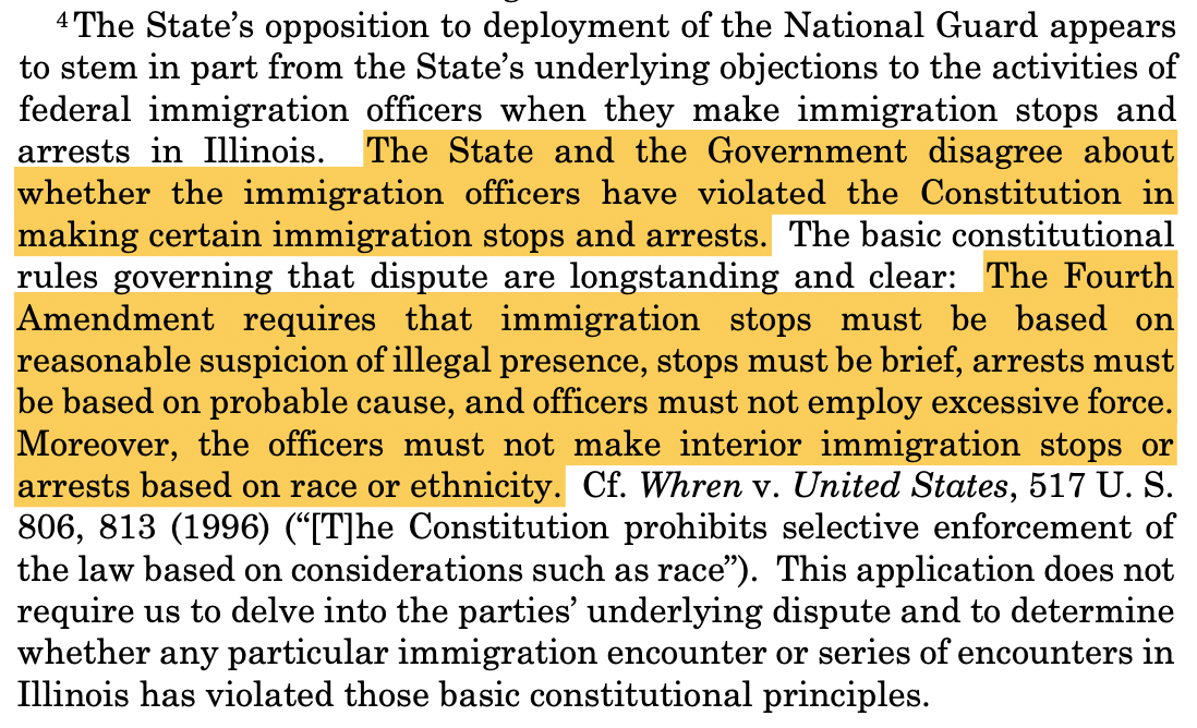 Finally, in a case over Trump’s federalization and deployment of the National Guard, Kavanaugh dropped a footnote in his concurrence indirectly responding to the “Kavanaugh stop” questions I and others have raised and public outcry over the Supreme Court’s September ruling allowing racial profiling in certain circumstances in immigration raids — and, specifically, his statement supporting the ruling.
