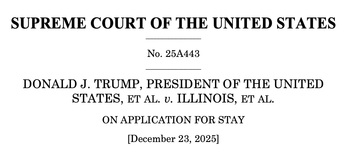 Justices Clarence Thomas, Sam Alito, and Neil Gorsuch would have granted the Justice Department’s request to stay a district court order blocking the National Guard federalization and deployment in Illinois — allowing federalization and deployment for now. Even both dissenting opinions, it should be noted, highlighted the tentative nature of their thoughts, given the posture of the case.