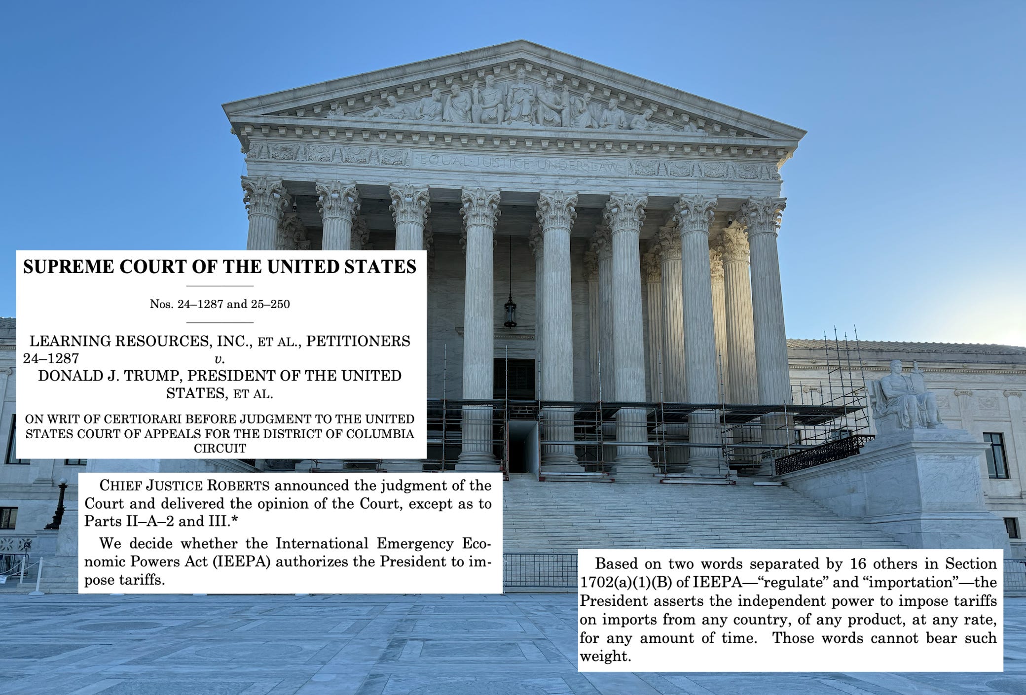 Supreme Court, on a 6-3 vote, blocks Trump's IEEPA tariffs