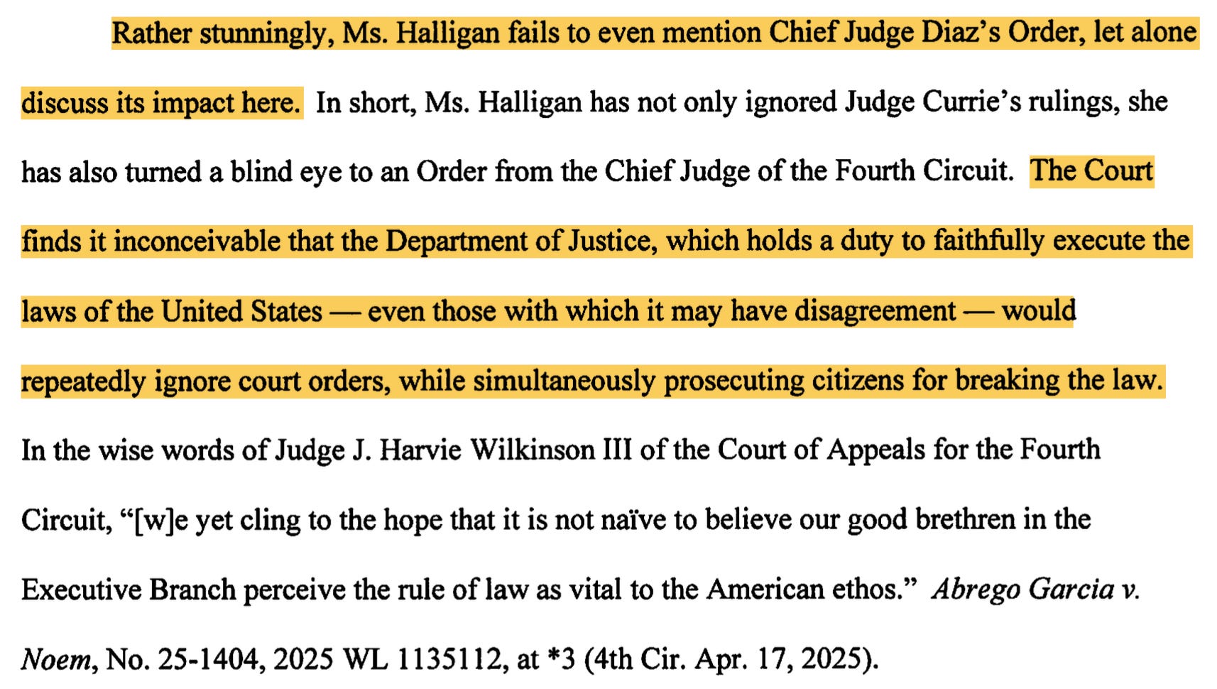 Halligan — the manifestly unqualified person who Trump decided he wanted installed as the federal prosecutor in Northern Virginia to go after his perceived enemies — has been an extreme embarrassment for the rule of law and would be out of any job in the Justice Department if the Justice Department in the Trump administration valued the rule of law.