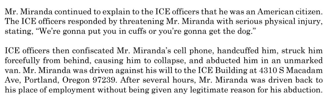 “Turn around or you’re going to get the dog,“ Frank Miranda — a U.S. citizen born in California — was told by ICE agents in Portland on October 2.