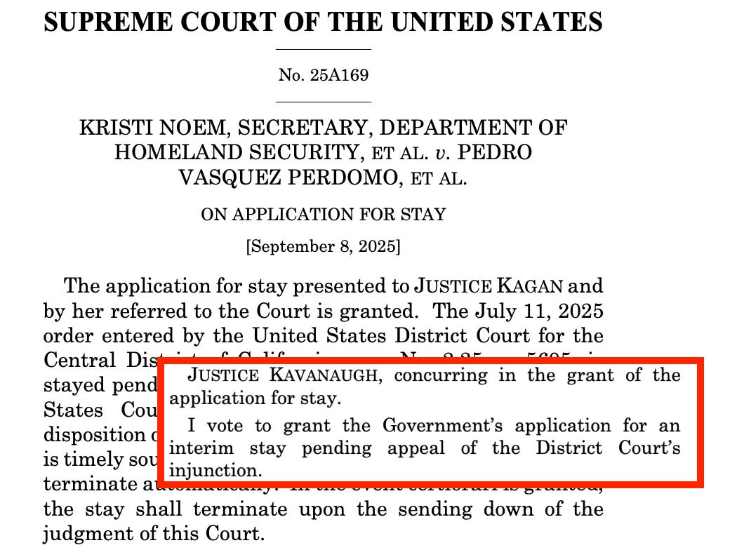 One month after the court’s order and Kavanaugh’s opinion were issued, I asked Justice Kavanaugh on October 8, “Do you have any comment on the ICE detention of Frank Miranda, a U.S. citizen, who was reportedly threatened, struck, and detained despite being a U.S. citizen?“