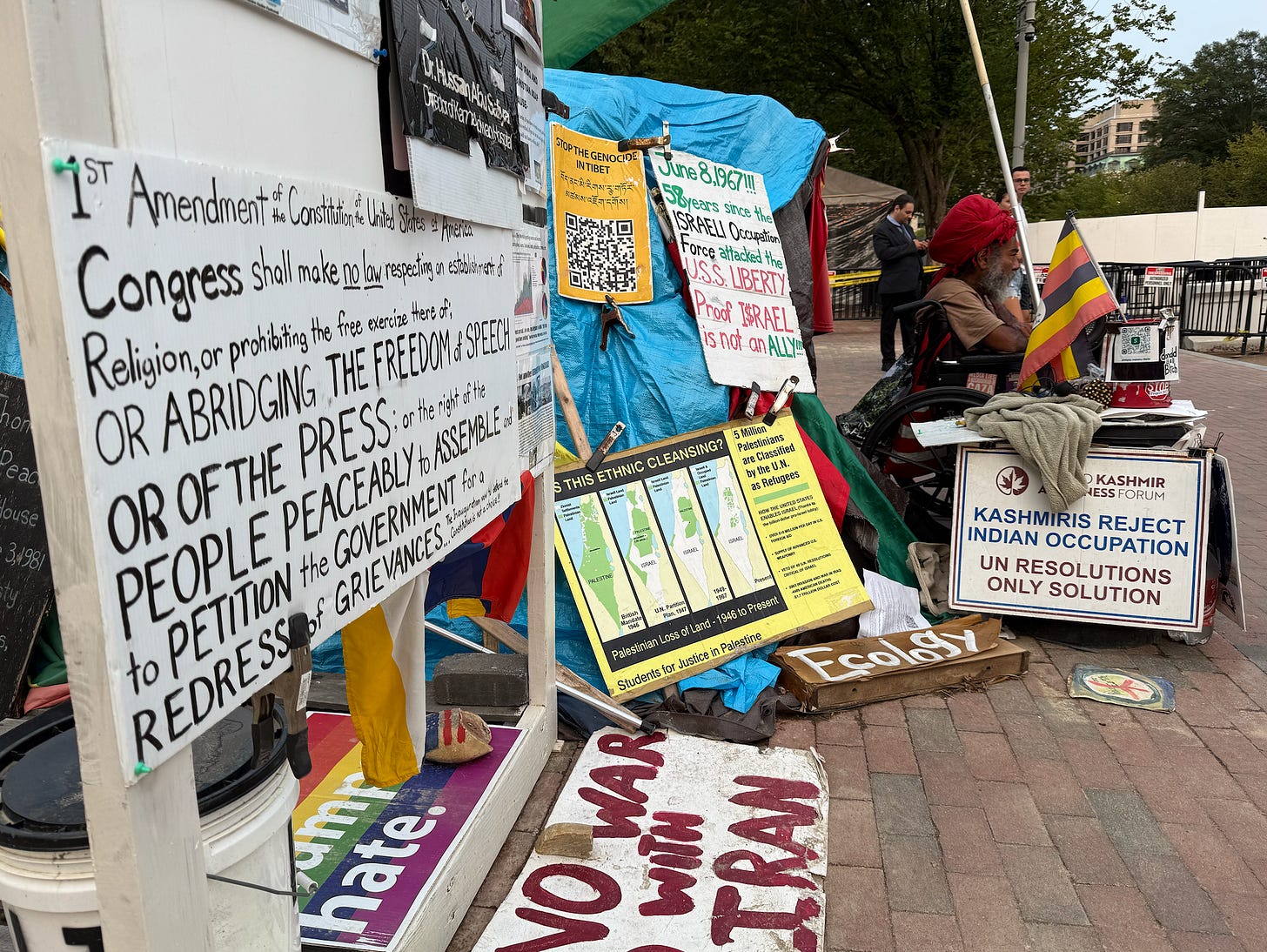 So if I'm removed from here, is it really petitioning the government for redress of grievances if I'm on the corner of 27th Northwest and P Street? No, it's not. So therefore, petitioning the government for redress of grievances would be more likely done in front of the Supreme Court, Congress, the White House, the Department of Justice, or the Department of the Interior. So there's a reason why — or the State Department. If you're going to be petitioning the government for redress of grievances.