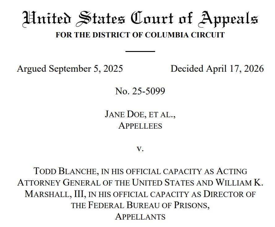 On Friday, April 17, the U.S. Court of Appeals for the D.C. Circuit issued a difficult ruling in the challenges to President Donald Trump’s executive order requiring federal prisons not to allow transgender women to be housed in women’s prisons.