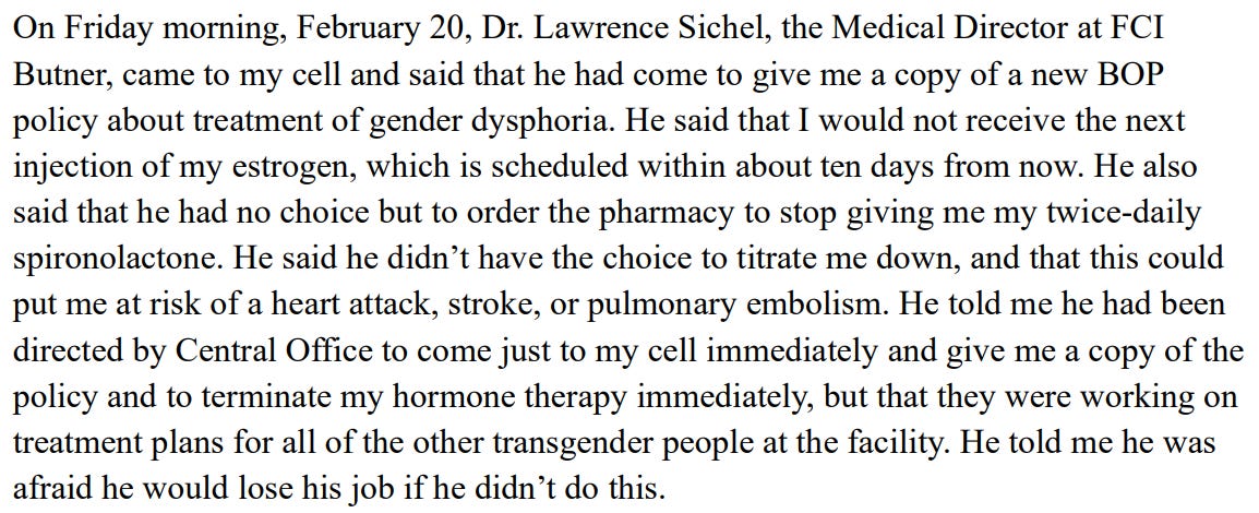 Trans woman involved in a lawsuit challenging anti-trans policies says federal prison official told her on Feb. 22: “I don’t give a fuck what that judge says, I do what I want.”