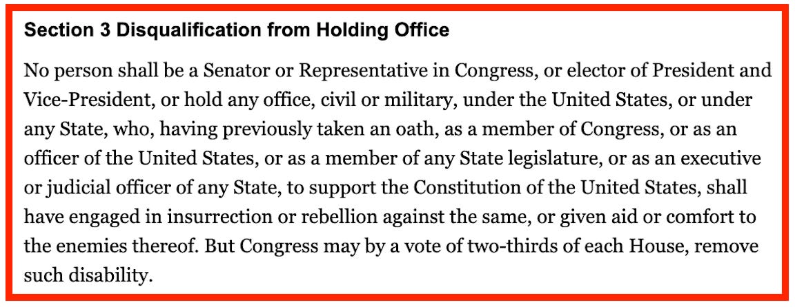 As to the Colorado decision specifically, the lawyers argue that only Congress should be allowed to enforce Section 3, that Section 3 only limits holding office so therefore cannot be used to limit ballot access, and that Colorado’s courts got Colorado law wrong.