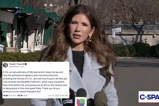 Trump started off the day with an Insurrection Act threat. DHS Sec. Noem followed up by saying that anyone "surrounding" any DHS target has to prove…