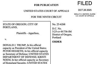 Monday's order granting the Trump admin a stay pending appeal in the Oregon case changed nothing on the ground immediately. But, it did crystallize…